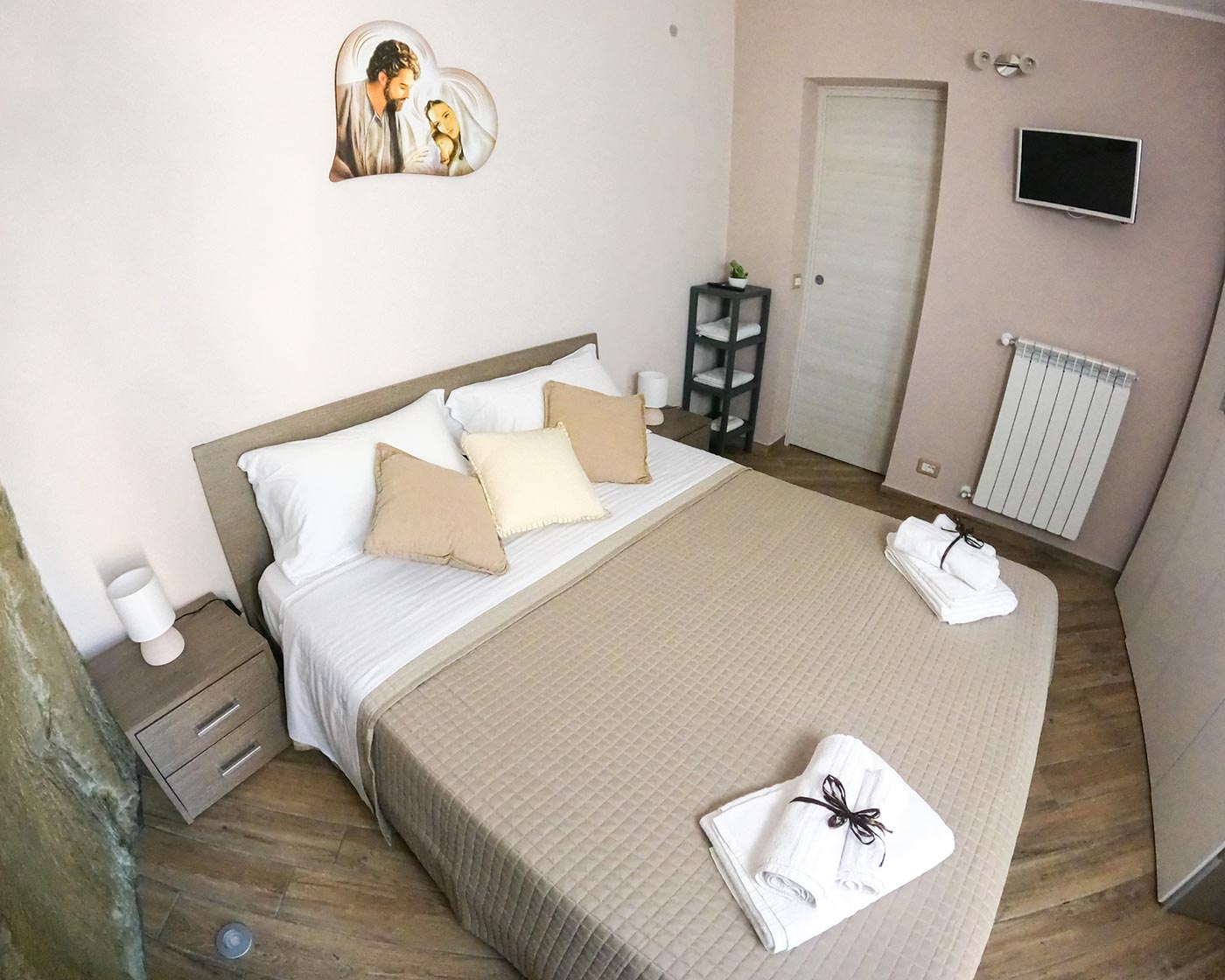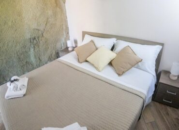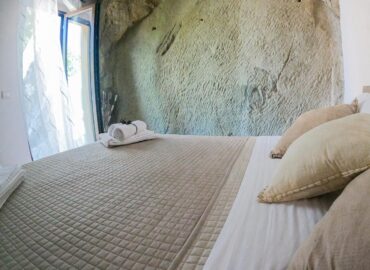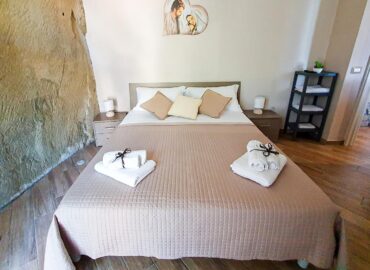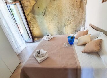 Stanze confortevoli e ristrutturate con arredi nuovi, curate in ogni dettaglio. La camera matrimoniale ha un’intera parete in roccia di arenaria illuminata con dei faretti dal basso, che conferisce all’ambiente suggestioni e fascino senza tempo. È dotata di un ampio armadio e una smart Tv. Grazie ad una porta finestra è possibile accedere al cortile panoramico privato. Nella zona giorno è possibile usufruire di un posto letto singolo.
